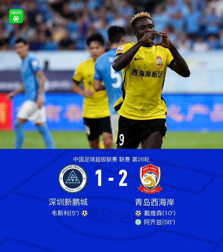 在金秋九月的温暖阳光下,北京时间9月28日,中国足球超级联赛第26轮赛事如火如荼地展开,深圳新鹏城在主场以满腔热情迎战远道而来的青岛西海岸。比赛伊始,韦斯利便如一道闪电,率先破门,为新鹏城点燃了希望的火花。然而,足球的魅力在于它的不可预测性,随后张卫的一次小失误,让阿齐兹抓住了机会,助攻戴维森将比分扳平,两队重新回到了同一起跑线。下半场,杨一鸣的手球送点,成为了比赛的转折点,阿齐兹冷静罚入,将比分反超。最终,青岛西海岸以2比1的比分,在客场带走了宝贵的三分,他们的笑容如同秋日的暖阳,温暖而灿烂。